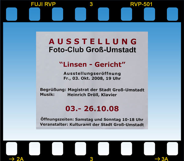 Vom 03. – 26.10.2008 fand in der Säulenhalle am historischen Marktplatz in Groß-Umstadt die diesjährige Ausstellung des Fotoclubs statt.