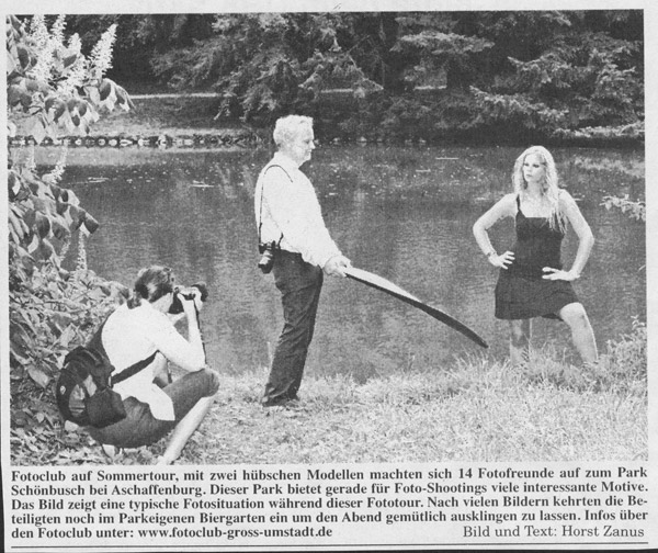 Anstelle im Clubraum Themen über fotografische Problemstellungen zu diskutieren machten sich 14 Fotofreunde auf nach Aschaffenburg in den Park Schönbusch. Mit von der Partie waren zwei hübsche Fotomodelle.