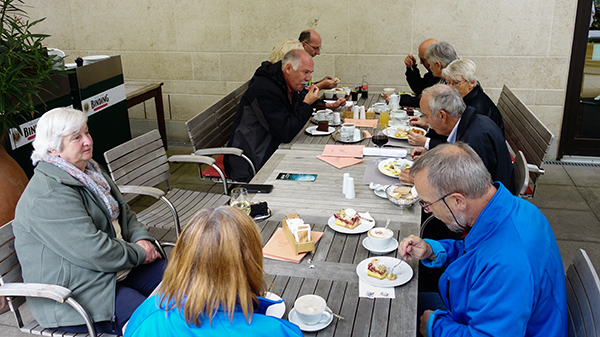 Zur Mittagspause traf man sich zum Essen mit Infoaustausch im Cafe Siesmayer welches im Palmengarten gelegen ist.