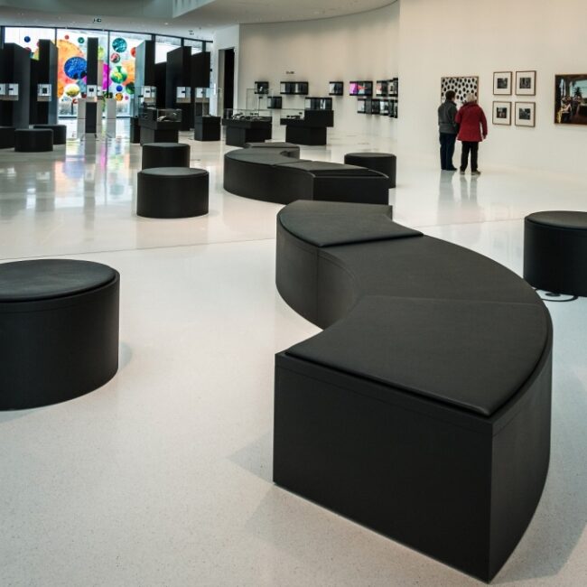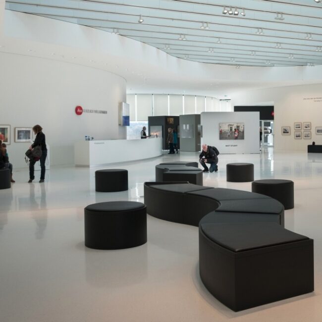 Die Leica-Welt ist der Firmensitz der Leica Camera in Wetzlar das Gebäude wurde von den Architekten  Gruber + Kleine-Kraneburg erbaut und ähnelt einer Filmrolle. Neben der Fertigung und der Logistik beherbergt das Gebäude auch ein Museum, einen Leica Shop und Ausstellungen. Wir erfuhren wissenswertes über die Firma Leica und deren Produkte, bekamen auch einen Einblick in die Produktion, in der Sonntags natürlich nicht gearbeitet wird. Leider gibt es Sonntags auch keine Führungen und das Café ist ebenfalls geschlossen, aber dafür ist es Sonntags recht leer, zumindest war das bei unserem Besuch so.