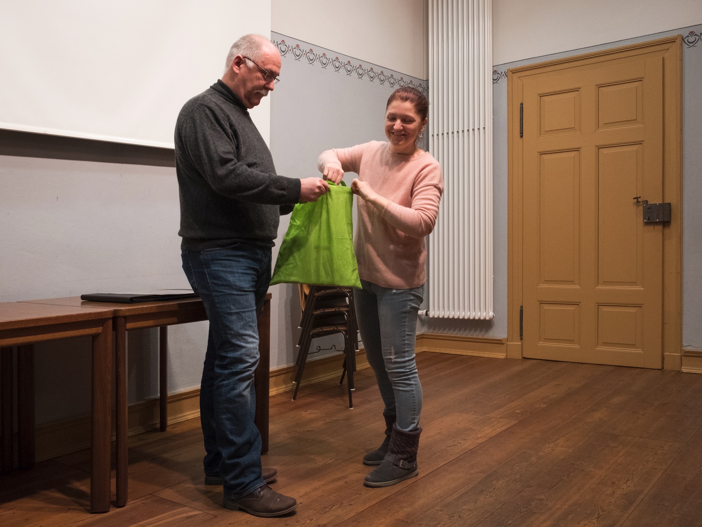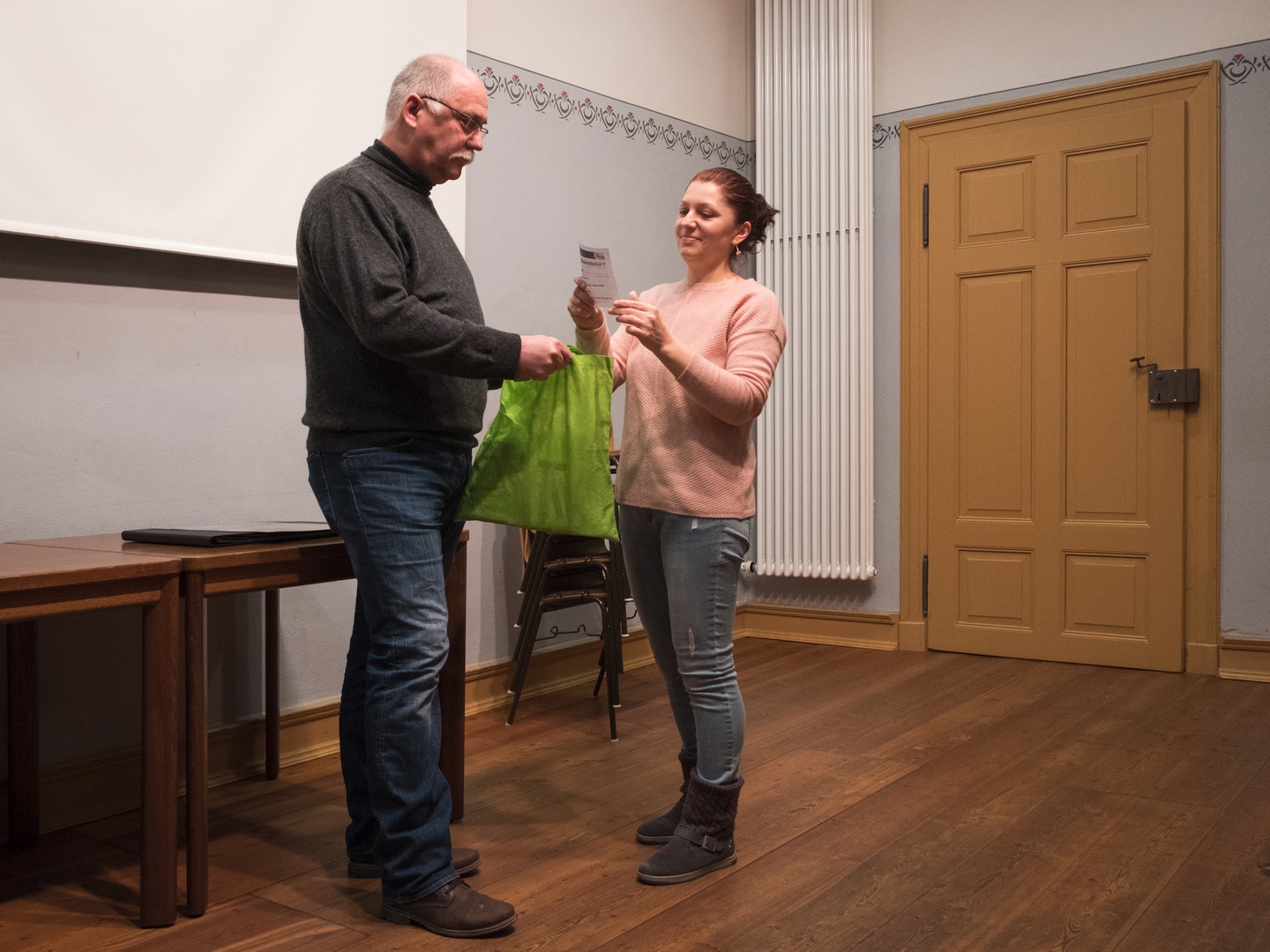 Im Alten Rathaus von Klein-Umstadt konnte der 2. Vorsitzende des Fotoclub Groß-Umstadt e.V. eine glückliche Gewinnerin begrüßen.