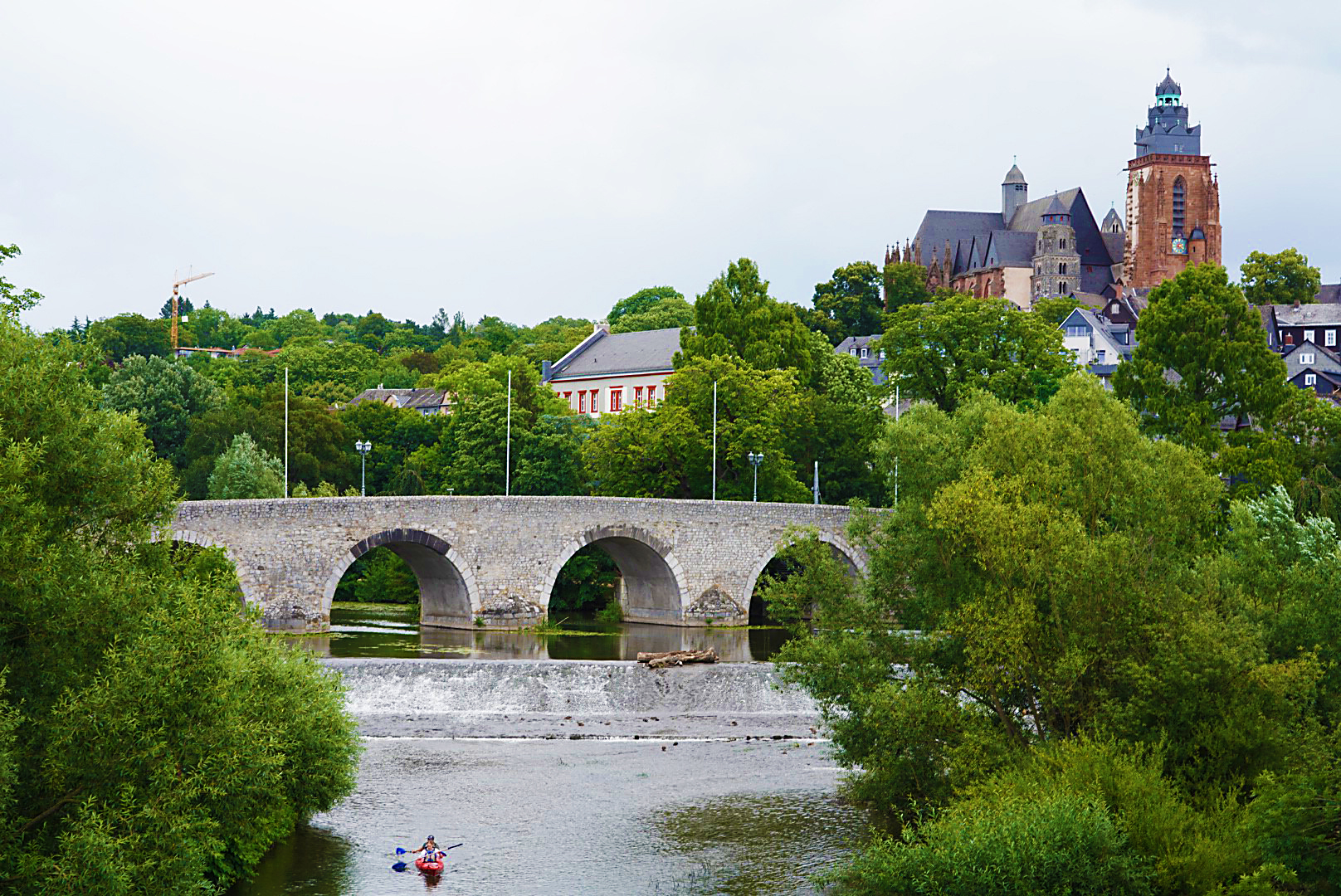 An der Lahn können wir uns die alte Lahnbrücke ansehen. Parken können wir dabei ganz in der Nähe.