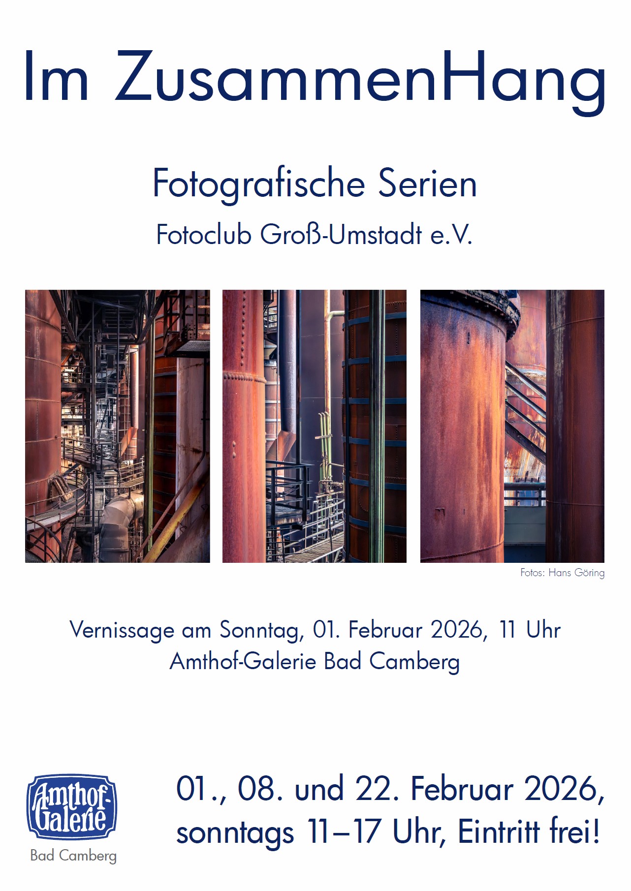 Im Februar 2026 zeigen 22 Mitglieder des Fotoclubs Groß-Umstadt ihre Werke in der Amthof-Galerie Bad Camberg.