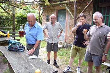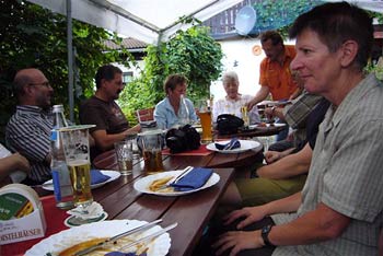 Am Sonntagmorgen trafen sich die Teilnehmer in Groß-Umstadt und machten sich auf den Weg. Zwischendurch gab es die eine oder andere Pause, in der Georg für jeden eine kleine Stärkung, aus eigener Herstellung, bereithielt. Pünktlich zum Mittagessen kamen alle in Hetschbach an. Nach einem guten Essen und gemütlichen Beisammensein sollte es eigentlich mit dem Zug zurück nach Groß-Umstadt gehen, da aber wegen Bauarbeiten an diesen Tag kein Zug fuhr wurde kurzerhand ein Fahrdienst organisiert, der alle wieder zurück brachte.