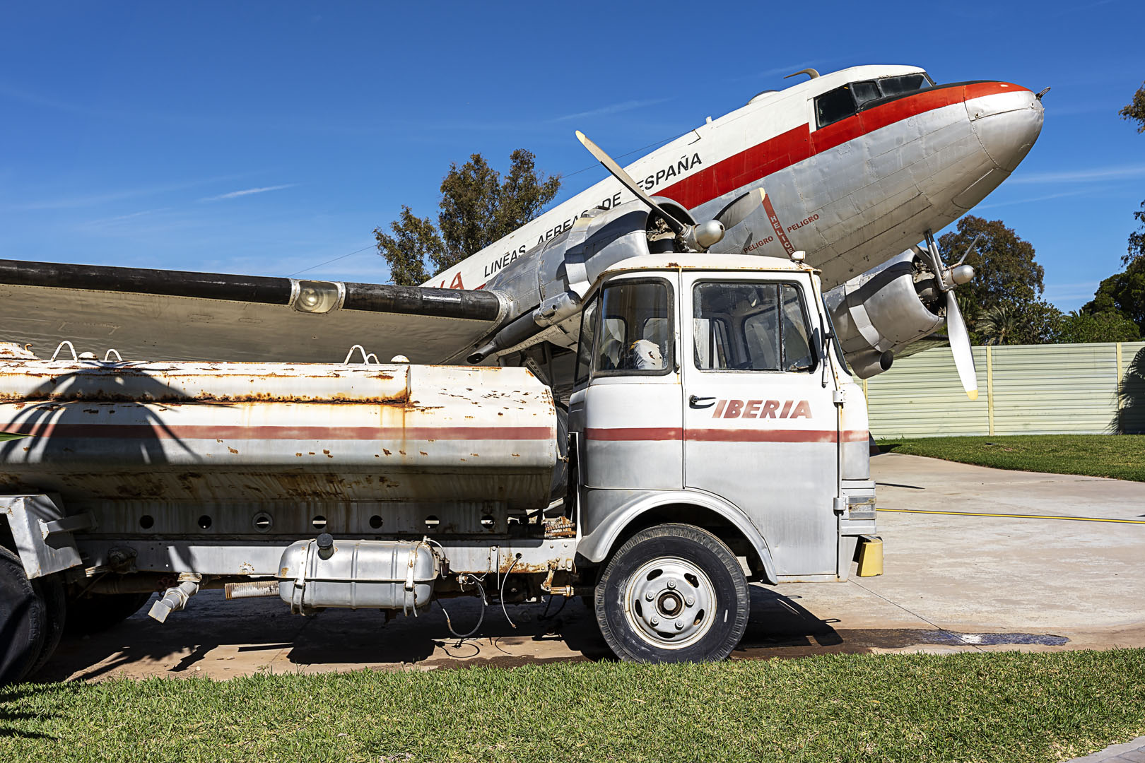 Im Außenbereich stehen mehrere alte Flugzeuge zur Besichtigung bereit, darunter eine Douglas DC-3, eine Convair 440, MCDONNELL DOUGLAS DC-9 und mehrere restaurierte Fahrzeuge.
