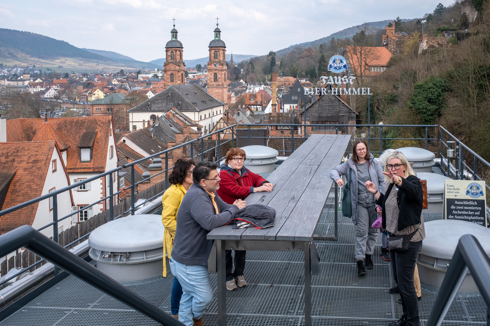 Eine außergewöhnliche Brauereiführung kann man in Miltenberg erleben. Das traditionelle Gebäude befindet sich im „Schwarzviertel“ der Altstadt. Hier kommt im Winter keine Sonne hin. Mangels Platz wurden die im Laufe der Jahre notwendigen Erweiterungen in die Höhe gebaut. Die unterhaltsame Führung beginnt im Keller und es geht über mehrere Ebenen nach oben, bis man auf dem Dach eine tolle Aussicht über Miltenberg und dessen Mainschleife hat.