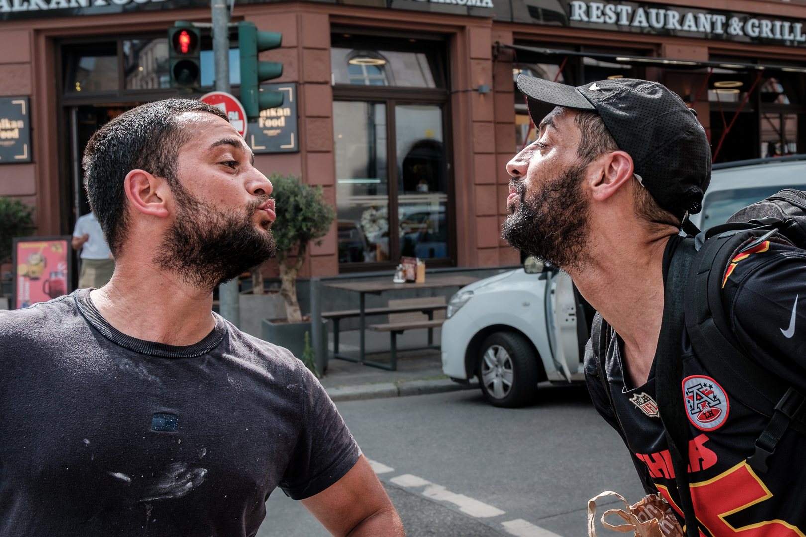 Aus dem heißen Spanien angereist treffen sich die Fotoclubmitglieder Reiner und Hans zu einer Fototour in Frankfurt. Der heißeste Tag der Woche und dann in der Stadt.