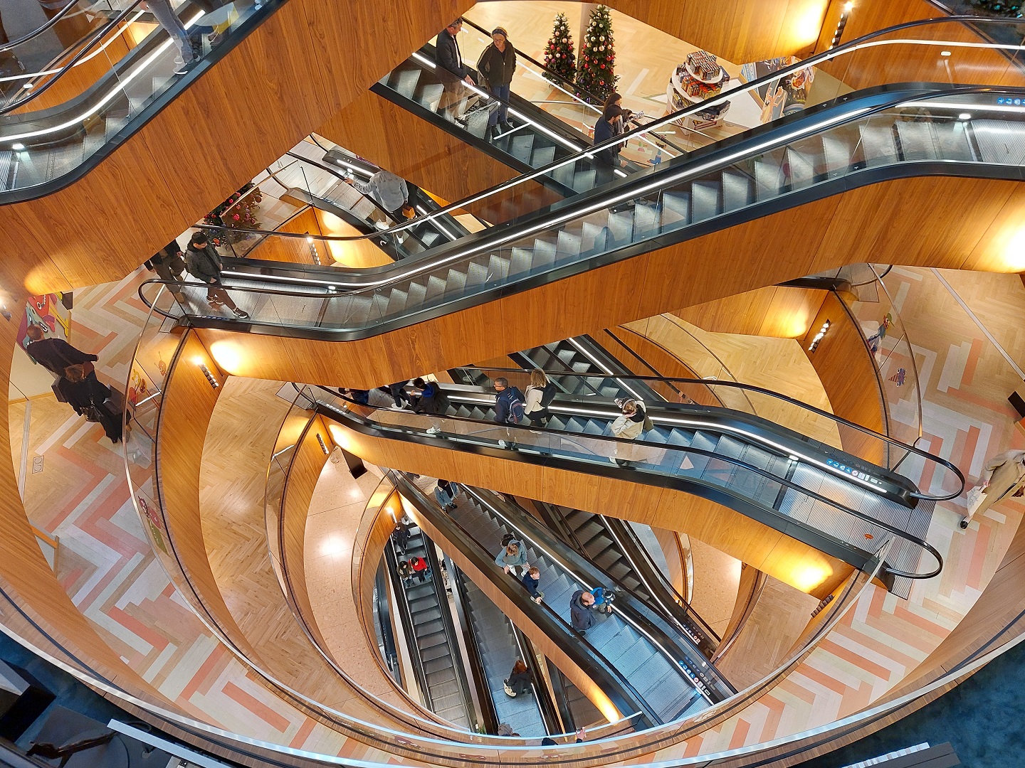Die Tradition im Fotoclub Treppenhäuser zu fotografieren habe ich auch in Berlin fortgesetzt. Das alte Treppenhaus ist in den Rosenhöfen, sie sind der kleine Nachbar der Hackeschen Höfe. Das Roll-Treppenhaus ist im KaDeWe .
