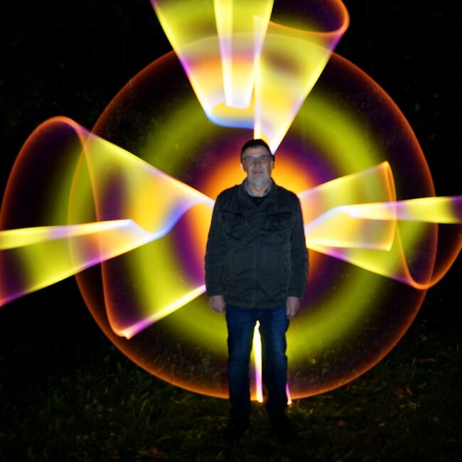 Der lange geplante Workshop zum Thema Malen mit Licht fand nun endlich am 21.10.2023 statt. Wir konnten Stefan Gürtler vom Fotoclub Groß-Gerau gewinnen, uns zu diesem Thema anzuleiten und zu begleiten. Wir trafen uns im Klubraum zu einer Einführung. Stefan zeigte uns zahlreiche, beeindruckende Bilder und erklärte, wie diese entstanden sind. Es gab reichlich Gelegenheit zu diskutieren und auch die Werkzeuge, verschiedenste Lampen und Lichtobjekte, wurden vorgeführt.