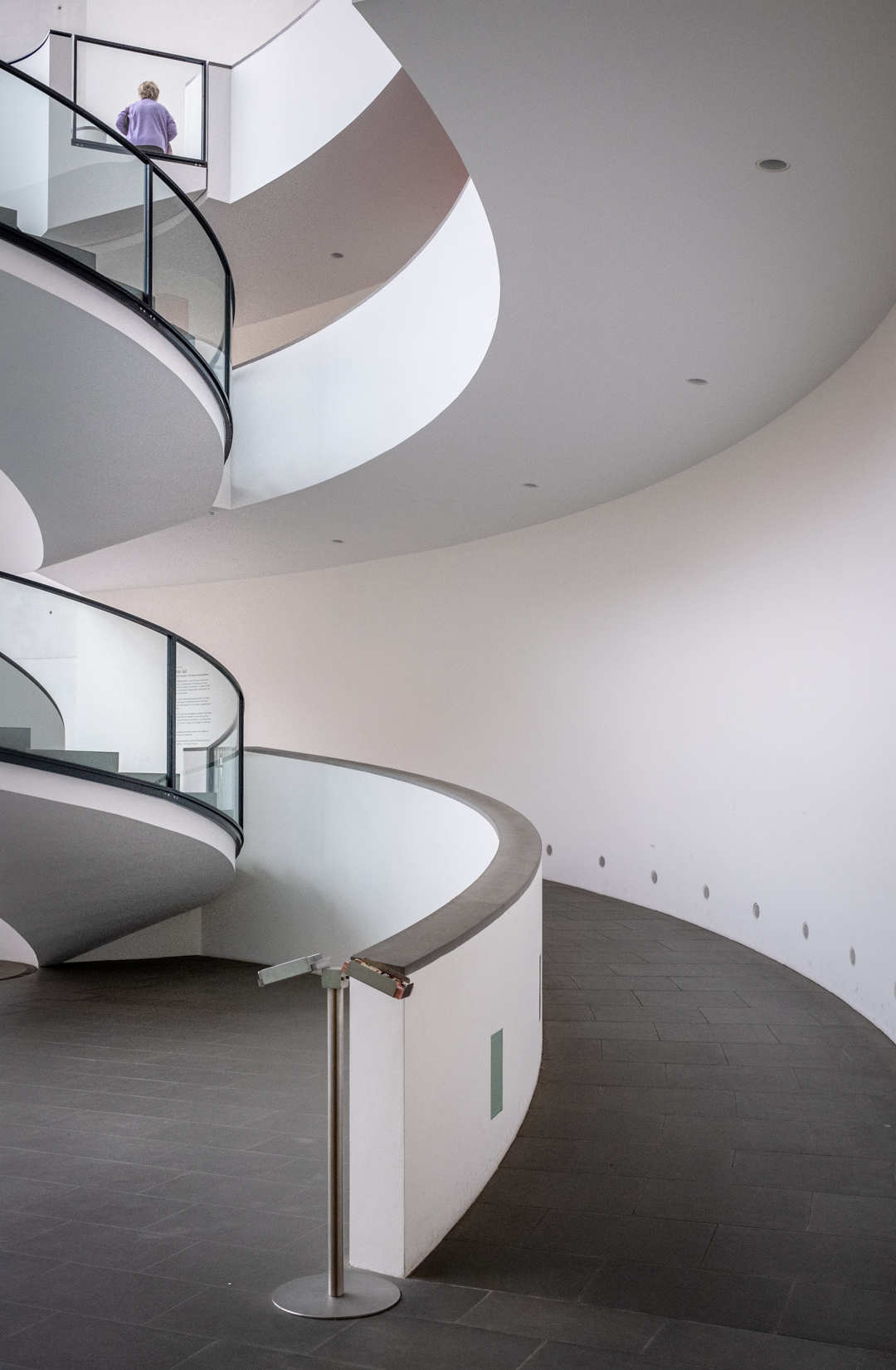 Nur einen Steinwurf vom Hauptbahnhof Nürnberg entfernt liegt das „Neue Museum – Staatliches Museum für Kunst und Design Nürnberg“. Der interessierte Besucher findet sehenswerte Designobjekte, Wandgestaltungen und Sonderausstellungen mit Bildern. Ein Hingucker ist die klare Architektur. Aus fotografischer Sicht fasziniert die Wendeltreppe als zentrales verbindendes Element der Ausstellungsebenen.