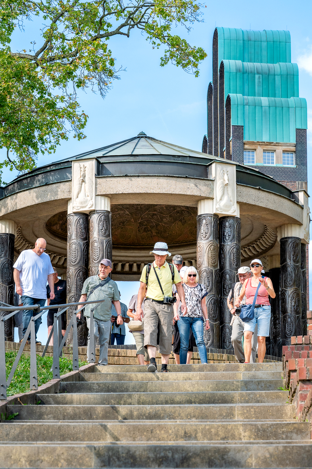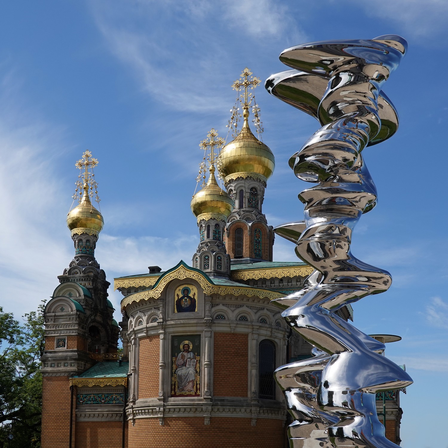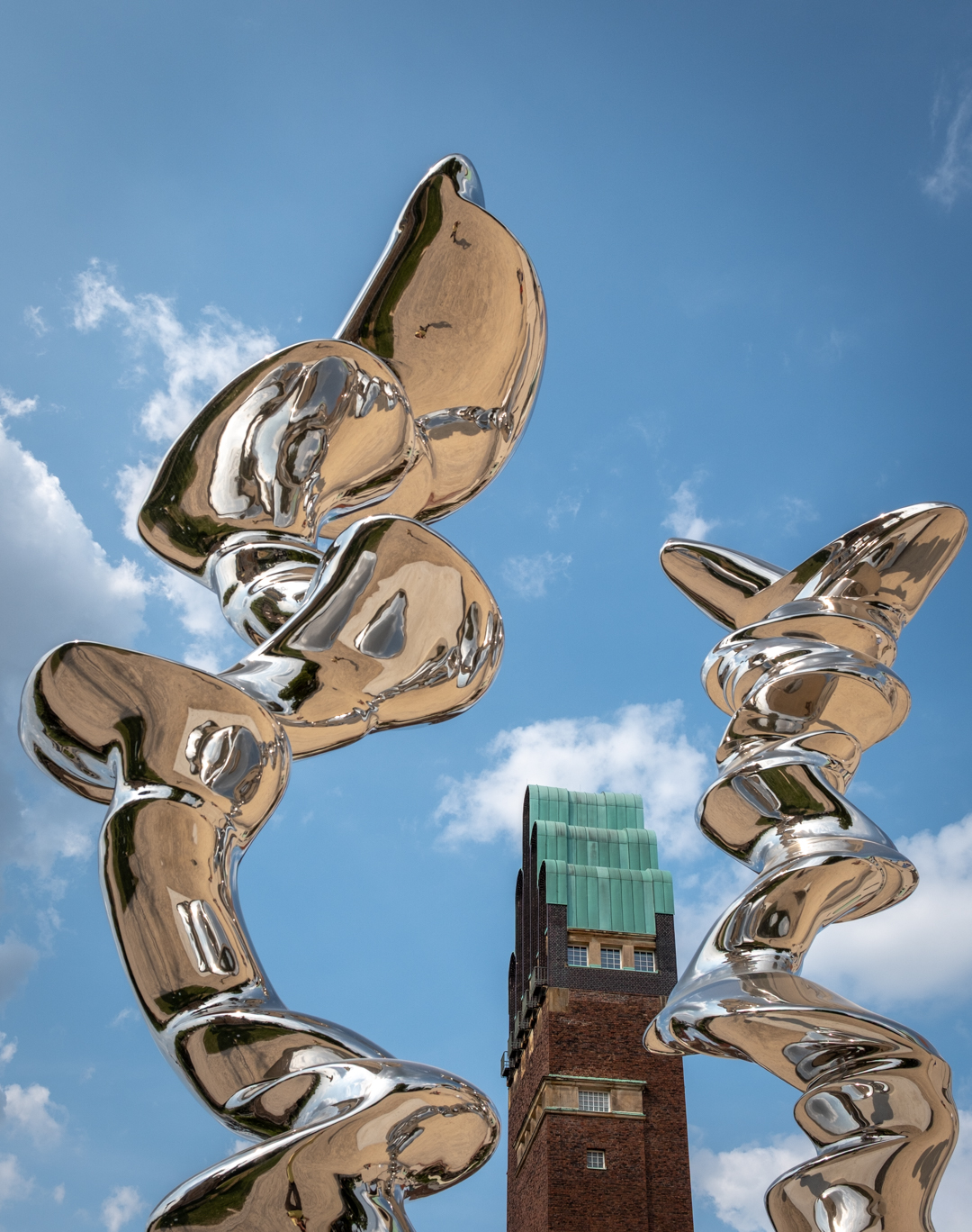 Unser letzter Ferienausflug in diesem Sommer führte uns am 20. August auf die Darmstädter Mathildenhöhe. Die Skulpturen des britisch-deutschen Künstlers Tony Craag waren das Ziel. Nachdem wir den in der Vorwoche geplanten Ausflug wegen der großen Hitze verschieben mussten, war an diesem Mittwoch Fotowetter. Nach einem kurzen Rundgang durch das frisch renovierte Jugendstil-Ensemble des Weltkulturerbes Mathildenhöhe folgten wir dann dem Pfad der Skulpturen in den Park Rosenhöhe. Die Formen und auch die Spiegelungen der Skulpturen des britischen Künstlers begeisterten. Aber es gab auch zahlreiche Ablenkungen. Insbesondere das Blumenmeer am Wegesrand und im Rosengarten bot zahlreiche Fotomotive. Am Spanischen Turm gab es dann noch etwas mehr Details zu den Skulpturen. Nach kurzem Weg zurück konnten wir die kleine Tour im Biergarten ausklingen lassen.