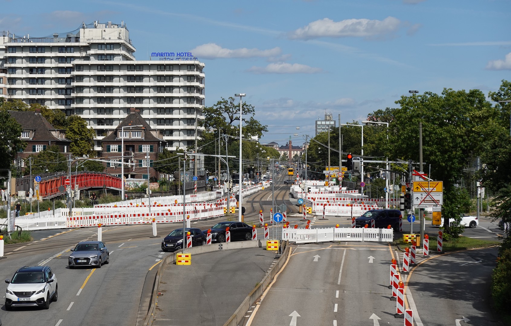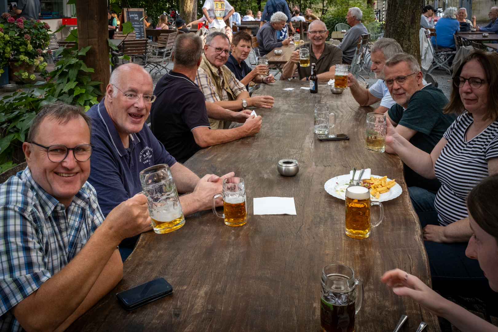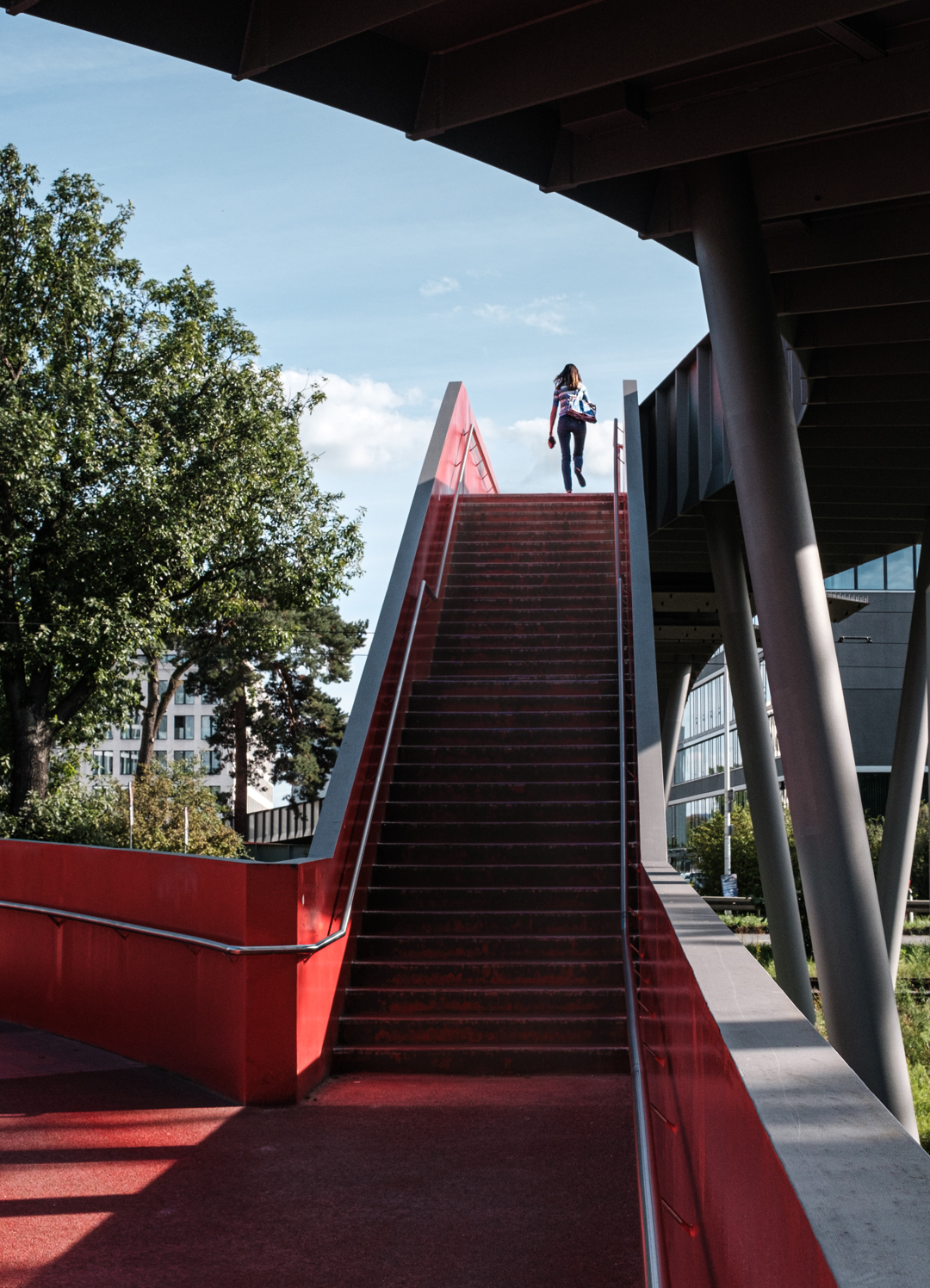 Ziel der fotografischen Sommertour war die Telekom-City im Westen von Darmstadt. Auf dem ehemaligen Wehrmachtsgelände waren ab 1949 das Posttechnische Zentralamt und das Fernmeldetechnische Zentralamt (FTZ) angesiedelt. Die Aufgaben FTZ lagen bis Ende der 1980er Jahre unter anderem in der Steuerung und Entwicklung neuer Nachrichtengeräte und -systeme. 1989 kam das FTZ zur neu gegründeten Telekom AG. Ein Teil des FTZ, das Technologiezentrum, arbeitete unter anderem an Multimedia und Glasfaserübertragung. Von 2002 bis 2005 entstand an Stelle des ehemaligen FTZ die ‚Telekom-City‘, mit mehreren Einrichtungen der Telekom, unter anderem der Internettochter T-Online. Auf einer Fläche von rund 20 Hektar entstand bis 2014 das Technologiezentrum Rhein Main Deutsche Telekom AG, mit 25 modernen Bauprojekten. Ein fotografischer Höhepunkt war die „Rote Brücke“ für Fußgänger und Radfahrer zur Querung der Rheinstraße. Einen würdigen Abschluss fand die Tour im Biergarten auf der Mathildenhöhe.