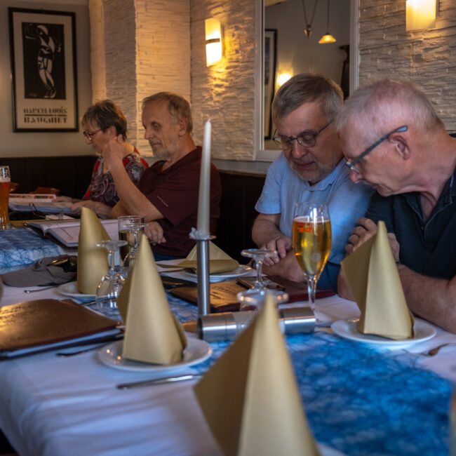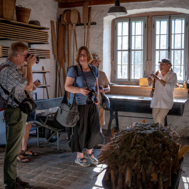 Nach einer kurzweiligen Einführung durch Volker in die Geschichte der Basilika wurde diese besichtigt. Der wunderschöne Klostergarten war das nächste Ziel, bevor der Fotoclub eine unterhaltsame Extra-Führung durch die Klostermühle mit Bäckerei erhielt. Neben der Geschichte der Klostermühle wurde anschaulich geschildert wie früher die Mühle betrieben wurde. In der Bäckerei wurde gerade der Holzofen für das Brotbacken aufgeheizt. Etwas schwitzend konnten wir einen Einblick in die Kunst des Brotbackens mitnehmen. Danach bestand noch die Möglichkeit für eine individuelle Fototour durch die Altstadt, bevor sich alle beim Italiener zum Abschluss des gelungenen Abends trafen.