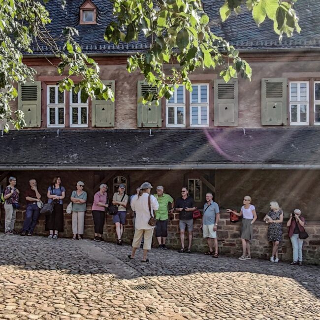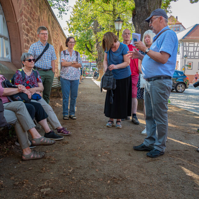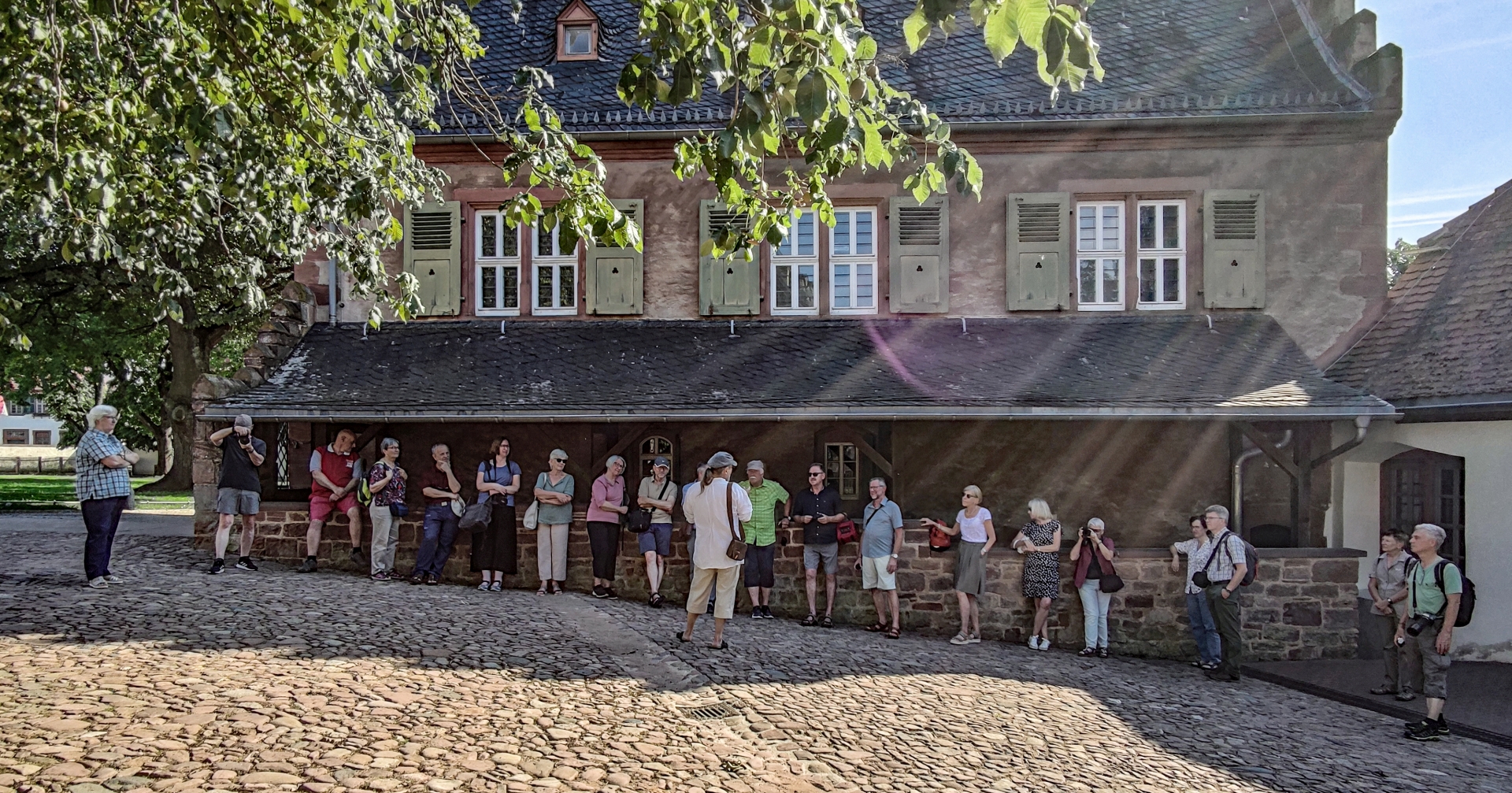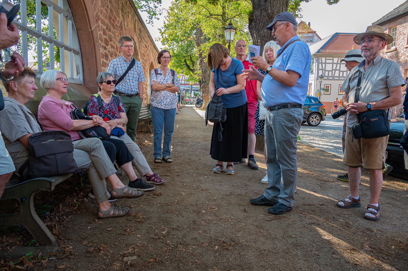 Die letzte Sommertour in diesem Jahr führte uns am 23.08.23 nach Seligenstadt. Treffpunkt für die 22 Teilnehmer war diesmal um 16 Uhr an der Basilika. Auf Grund des schönen Sommerwetters nutzten einige Teilnehmer das Fahrrad.