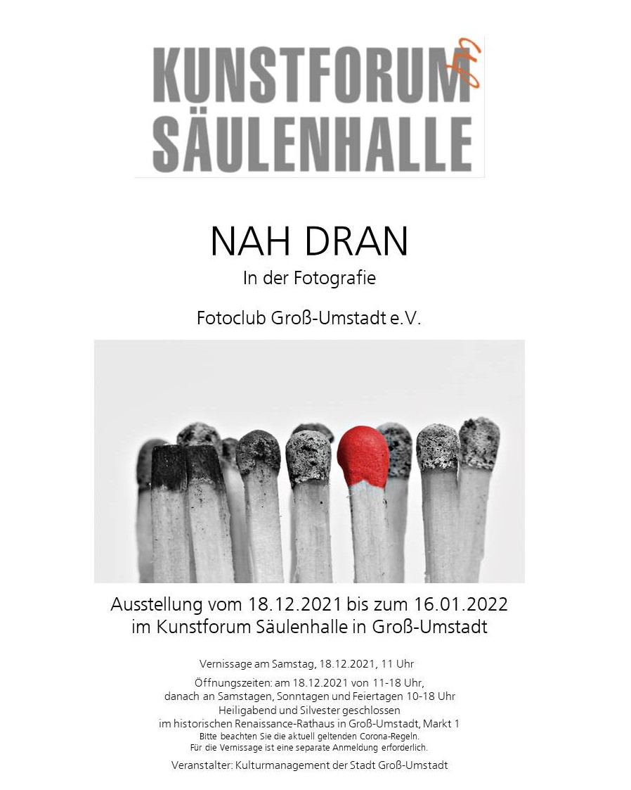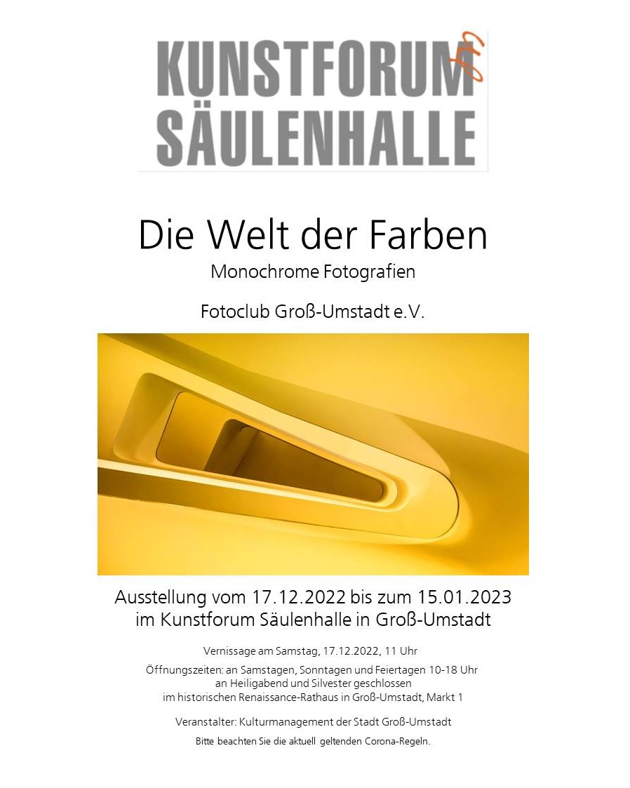 Ausstellung Licht und Schatten – Fotografien 22.12.2023 bis 21.01.2024 im Kunstforum Säulenhalle in Groß-Umstadt. Ausstellende Mitglieder Uwe Augustin, Herbert Bickert, Christian Ebert, Gerald Frantz, Hans-Günter Göring, Karlheinz Groh, Volker… Ausstellung Licht und Schatten weiterlesen