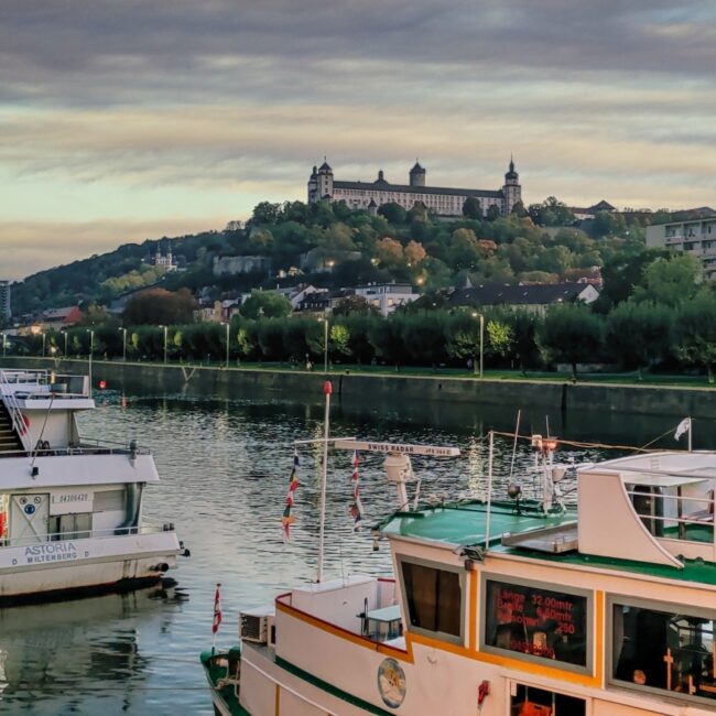 Wir waren 16 Leute die Würzburg erkunden wollen. Um 10 Uhr war Treffen an der Festung Marienberg. Wir waren überrascht wie imposant und groß die Festung war. Mit Blick von dort auf die Wallfahrtskirche Käppele und auf Würzburg. Weiter ging es in die Innenstadt. Nun über die alte Mainbrücke und man genoss den traditionellen Brückenschoppen, auch zum Kaffeetrinken war Zeit. Liefen über den Marktplatz und zum Kiliansdom. Durch die Innenstadt mit Erklärungen ging es zum UNESCO Weltkulturerbe Residenz. Leider war keine Besichtigung vorgesehen, schade, aber es machte nichts, denn das Fotografieren im Inneren war verboten. Gleich daneben war der Hofgarten eine sehenswerte Parkanlage, die wir durchstreiften und wir schauten uns noch die Hofkirche an. Nun fielen leichte Regentropfen, die wir aber ignorierten. So gegen 18 Uhr gingen wir zum Abendessen ins Bürgerspital Weinstuben. Nach dieser Stärkung suchten wir die blaue Stunde und gingen über das Juliusspital. Vorbei am Alten Kranen das Wahrzeichen der Stadt am Flussufer, am Kongresscenter über die Friedensbrücke und in der Dämmerung zurück zum Parkplatz.
