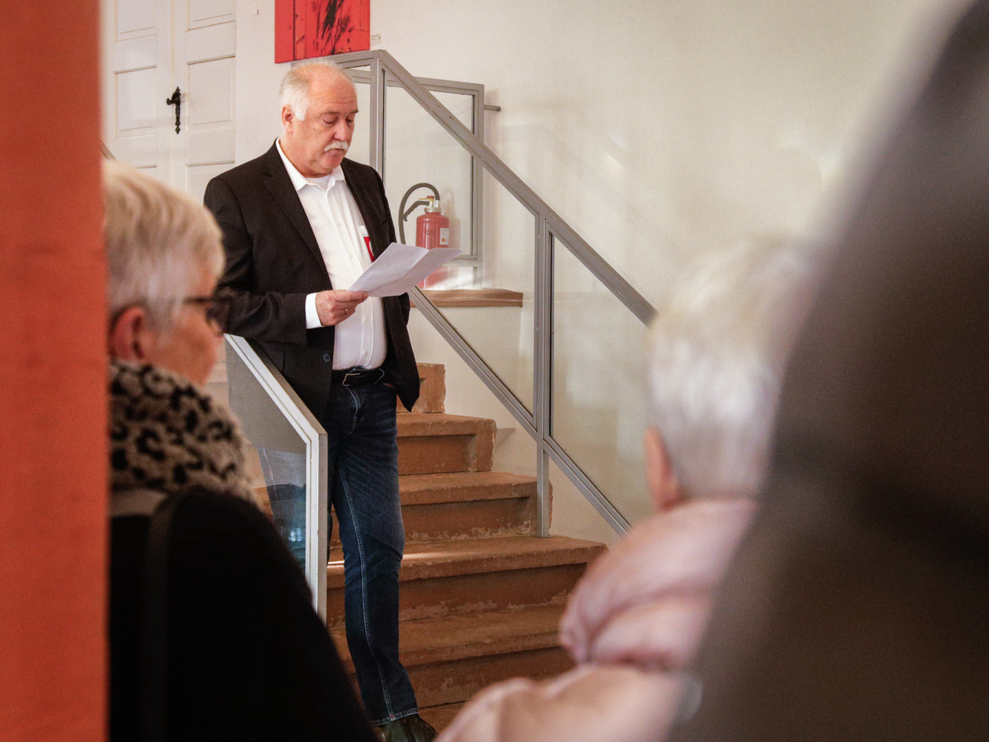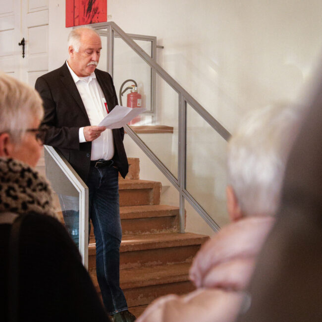 Die musikalische Begleitung erfolgte mit harmonischer Gitarrenmusik durch das Duo „SLOW FRET“. Frau Borchert, Kulturreferentin der Stadt, begrüßte die Anwesenden in Namen der Stadt Groß-Umstadt. Der 1. Vorsitzende des Fotoclubs Herr Meyer erläuterte in seinem Einführungsvortrag das Thema der Ausstellung. Bürgermeister René Kirch konnte trotz seines engen Terminkalenders einen Besuch der Ausstellung einplanen.